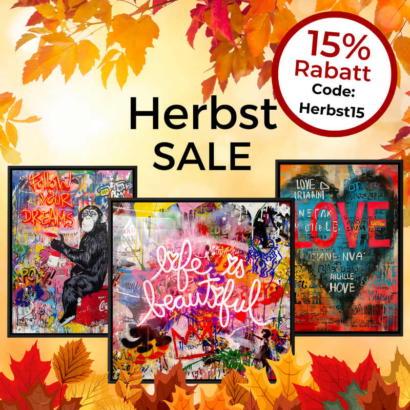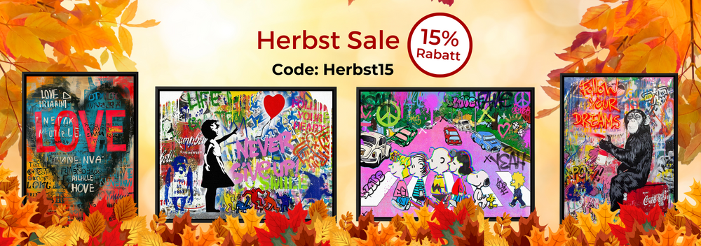 Wenn dir der Sinn eher nach rebellischer Kunst steht, ist unsere Street Art genau das Richtige für deine Wohnung. Entstanden in den 70er Jahren in New York wurde diese graffitiartige Kunst auf Fassaden und auf Eisenbahn-Waggons gesprayt. Unsere modernen Bilder fangen diese Ästhetik perfekt ein. Diese Kunstwerke zeigen meist graue Hintergründe, die die urbane Stimmung perfekt einfangen. Hinzu kommen farbige Elemente, die für spannende Kontraste sorgen und diesen modernen Leinwandbildern eine einnehmende Wirkung verleihen, die deine Gäste begeistern wird.